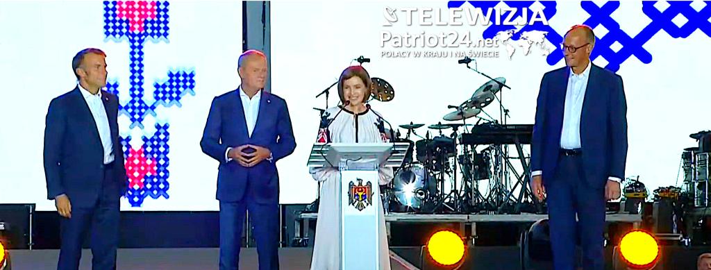 - Dzisiaj nasi przyjaciele są tutaj przy nas, żeby powiedzieć, że Mołdawia się liczy, a przystąpienie do Unii Europejskiej nie jest tylko dalekim marzeniem. Ten projekt jest w naszych rękach. […] Francjo, Polsko, Niemcy – pokazujecie nie tylko wsparcie dla Mołdawii, ale także to, że projekt europejski dalej się rozwija, a my jesteśmy jego częścią – powiedziała Maia Sandu.