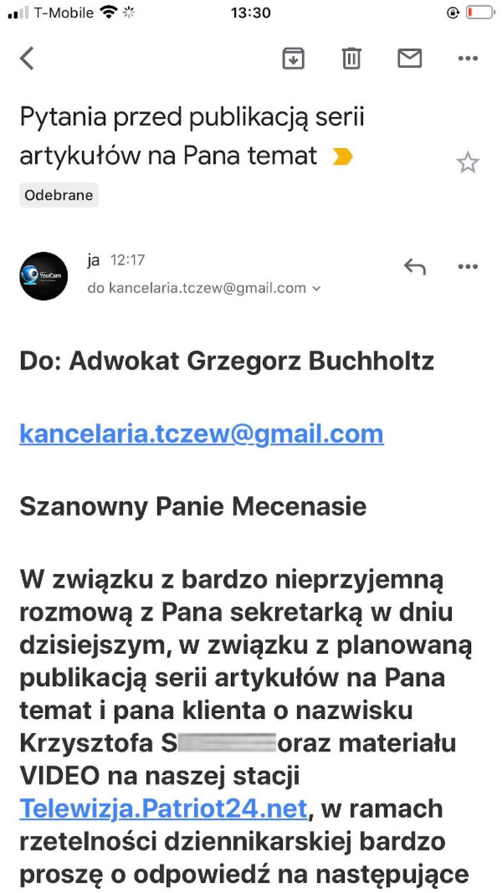 Adwokat Grzegorz Buchholz udzielił jednak odpowiedzi pisząc, że jako przedstawiciel swojego klienta nie udzieli nam żadnych informacji. Jego odpowiedź również zamieszczamy wraz z niniejszym tekstem.