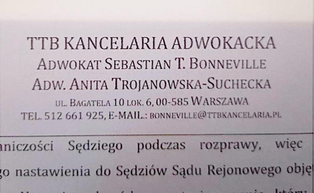 Adwokaci Anita Trojanowska-Suchecka i Sebastian T. Bonneville również nie odpowiedzieli dotąd na zadane im następujące pytania: